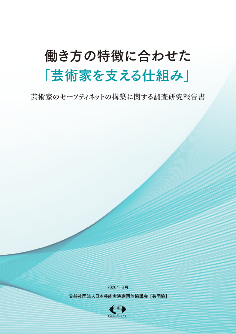 芸団協では、2022年度から、「芸術家の社会保障等に関する研究」を開始し、国内外の制度の研究を進めています。そして、研究のまとめとして2024年4月に、次世代を担う若者にとっても魅力ある現場となるよう、実演家、スタッフ、制作事業者が手を取り合い、実演芸術業界の労働環境をより良くしていくための「芸術家のための互助の仕組み」づくりを提案しました。
